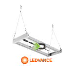 Luminaria LED para crecimiento de plantas con protección para exteriores. Estructura de aluminio fundido, protección IP65, protección contra sobretensiones 6 kV, luminaria de emisión de espectro completo.